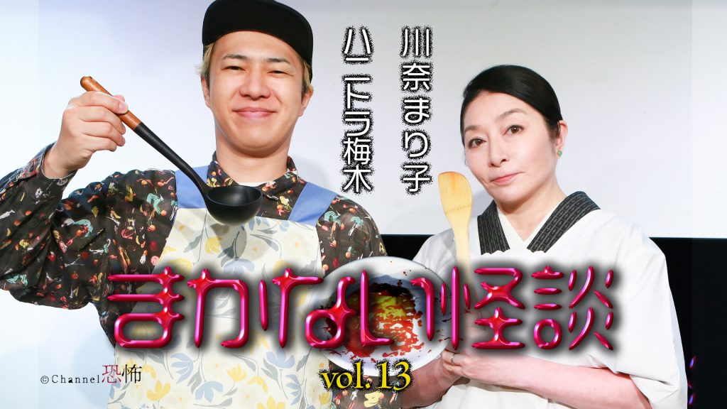 ◆怪談師としてはもちろん、無類の料理好きとしても知られるハニトラ梅木がその腕前を余すところなく披露する番組、それが「まかない怪談」!▲ゲスト怪談師を招いて、一方が料理を作っている間にもう一方は怪談を語る。▲ゲストは初の女性ゲスト 川奈まり子!自前の割烹着で気合十分。川奈家秘伝の時短メニューを披露する!