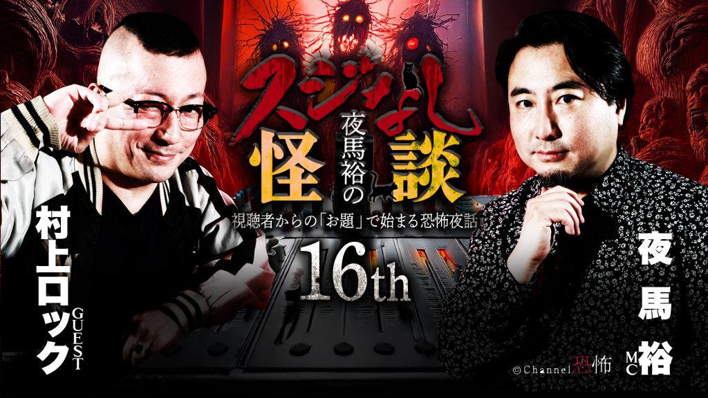 ◆〈厭怖怪談〉の人気怪談師・夜馬裕氏MCのLIVE配信再編版第16回!視聴者から頂いた『お題』から連想された実話怪談を語る筋書きのないラジオ風怪談トーク番組!▽今回は記念すべき〈スジなし怪談〉のパイロット版イベントのゲスト、大人気怪談師・村上ロック氏がレギュラー配信初登場!▽不条理怪談からSFチックな怪異譚まで変幻自在な語りべ・ロック氏が軽快なトークと共に「職場」や「入れ替わり」「お風呂」などのお題から怪談を語れば、〈厭怖〉の帝王・夜馬裕氏は「ラーメン」「お好み焼き」「美容室」と難易度高めのお題から厭~な話を披露★2025年4月25日生配信番組の再編版